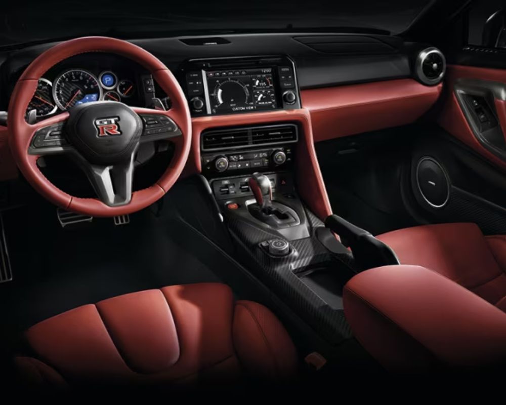 Step inside the 2024 Nissan GT-R and experience a world of comfort and luxury. The spacious front seats provide ample room and superior support, ensuring a comfortable and enjoyable ride, even during spirited driving. The interior is thoughtfully designed and comes equipped with a range of standard features, including dual-zone climate control, leather-and-suede-covered upholstery, and heated front seats. When it comes to cargo space, the GT-R offers versatility with a generous trunk volume of 249 litres, providing ample room for your belongings.