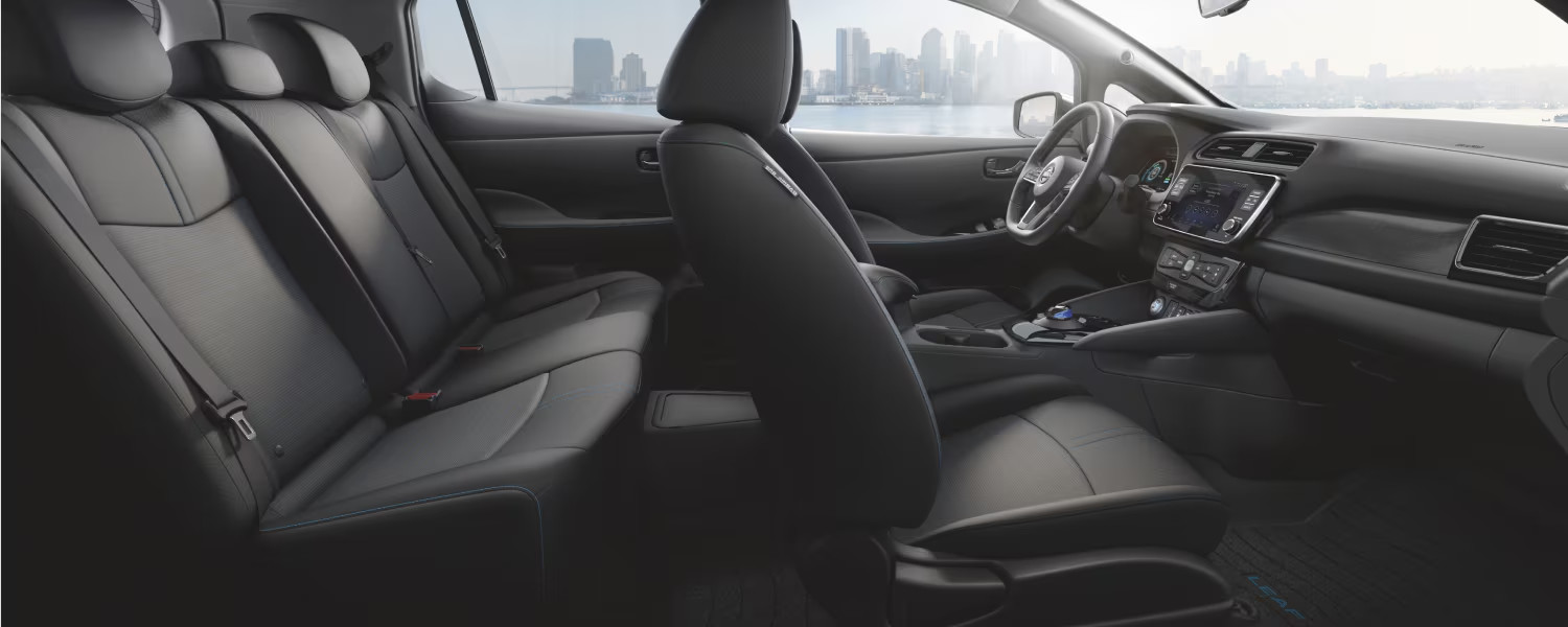 Inside the 2025 Nissan Leaf, you'll find a capacious and comfortable cabin that accommodates up to five passengers. The interior is replete with high-quality materials and a thoughtful design, providing ample legroom and cargo space. The rear seats add convenience with a 60/40 split-folding option, expanding the cargo area from 668 litres to 850 litres when folded down. Comfort is paramount, with heated front and rear seats, a sleek heated steering wheel, and an eight-way power adjustable driver's seat.